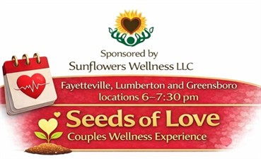 Seeds of Love: Couples Wellness Experience is a fun, heart-centered social and fitness event where couples work out together to strengthen both their physical health and emotional connection. The evening includes light-to-moderate partner stretches and mobility games, heart-healthy smoothies or a nutrition talk, and a short guided mindful reflection designed to help couples reconnect and grow together. Hosted by Sunflowers Wellness LLC at the Fayetteville, Lumberton, and Greensboro locations from 6:00–7:30 pm.