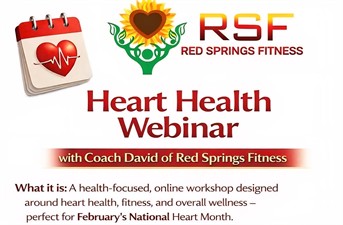 Heart Health Webinar with Coach David of Red Springs Fitness is a live, health-focused online workshop designed to support heart health, fitness, and overall wellness in recognition of February’s National Heart Month. This engaging Zoom webinar will cover heart health basics, including why February is Heart Month, demonstrate the top five heart-healthy exercises, and explore nutrition tips featuring foods that support a healthy heart. Participants will also benefit from an interactive Q&A session with Coach David and a bonus segment on stress management for healthier hearts. This webinar is ideal for individuals looking to improve their heart health through practical, easy-to-understand guidance they can apply right away. Join from the comfort of your home and gain valuable tools to support a stronger, healthier heart.