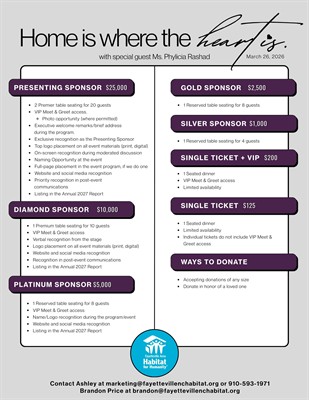 Sponsorship opportunities are available right now on our website. Individual tickets are also available on our website (2/6/2026 at 9:00 am) until sold out.