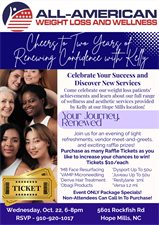 Join All-American Weight Loss & Wellness as we celebrate our weight loss patient's achievements and two years of renewing confidence with our Aesthetic Practitioner, Kelly Robeson, MSN, RN, CNL. This special evening will be held on Wednesday, October 22, 2025, from 6:00–8:00 PM at our Hope Mills office.