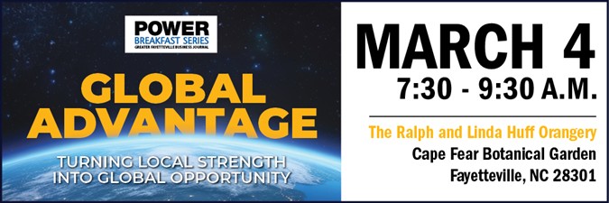 On March 4, 2026, join the Greater Fayetteville Business Journal for Global Advantage: Turning Local Strength into Global Opportunity, a Power Breakfast focused on how international business and global strategy are shaping the future of our local economy.